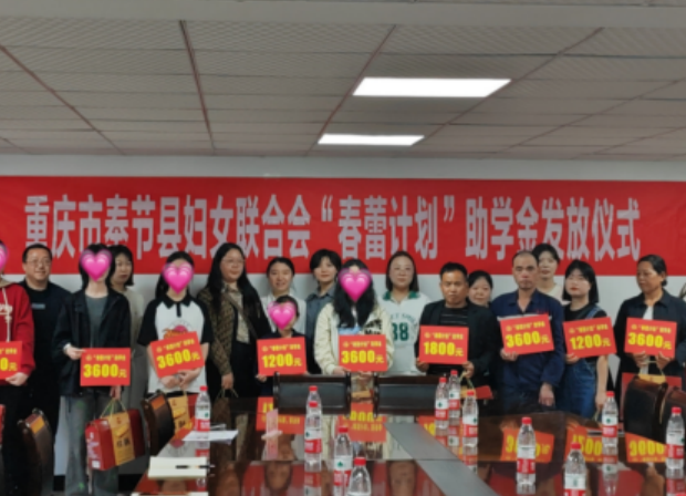 4月11日,奉节县妇联举行“春蕾计划”助学金发放仪式,奉节县妇联挂职副主席邓婷元、受助学生代表及家长、捐款单位代表共20余人参加活动。