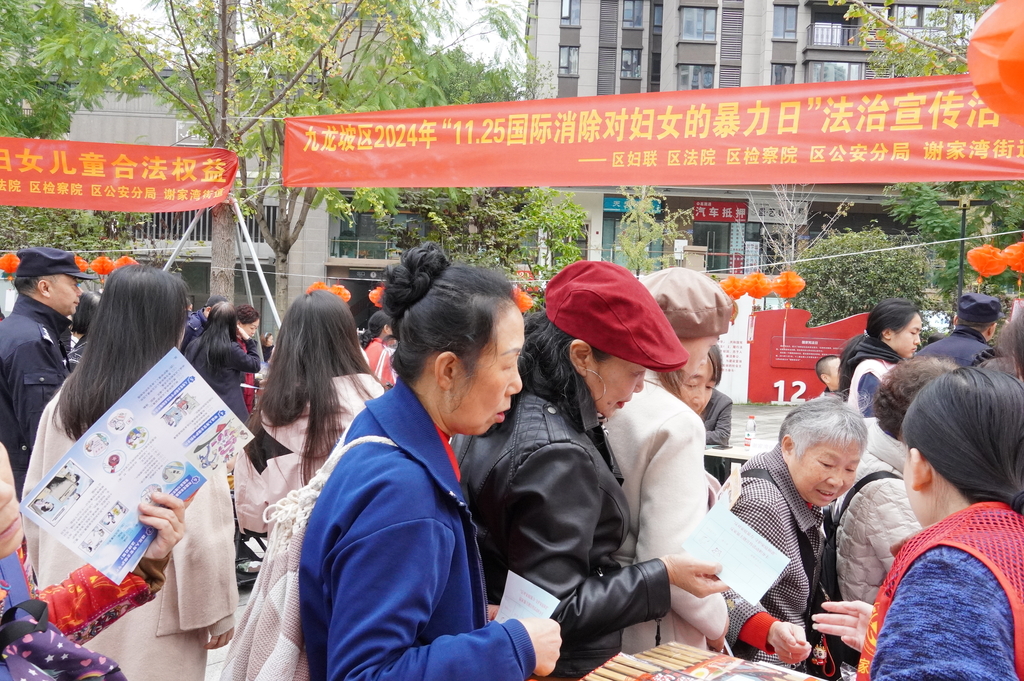 近日,九龙坡区妇联开展了2024年“11.25国际消除对妇女的暴力日”法治宣传活动。